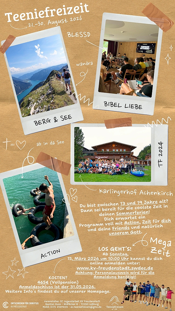 Ein Antrag auf Zuschuss für finanziell schwächer gestellte Familien ist möglich (Mail an: ec.teeniefreizeit@gmx.de)